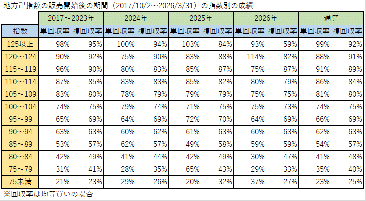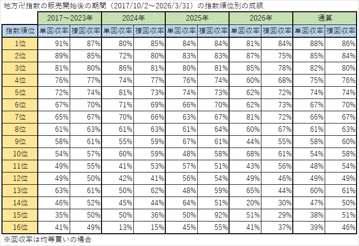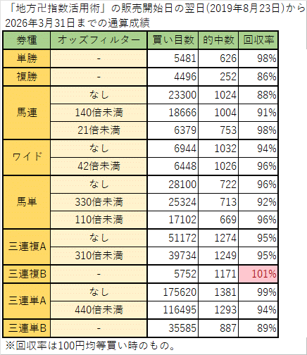 毎月、配信開始からの指数順位別、指数別の単勝回収率・複勝回収率の通算成績の最新版を公開!(※4/6更新)